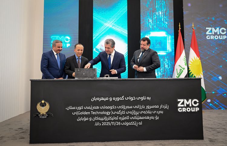 ئەمڕۆ چوارشەممە 11/26، مەسرور بارزانی، سەرۆکی حکومەتی هەرێمی کوردستان، بەردی بناخەی کارگەی (تەکنەلۆجیای زێڕین 2 - Golden Technology 2)ی دانا.