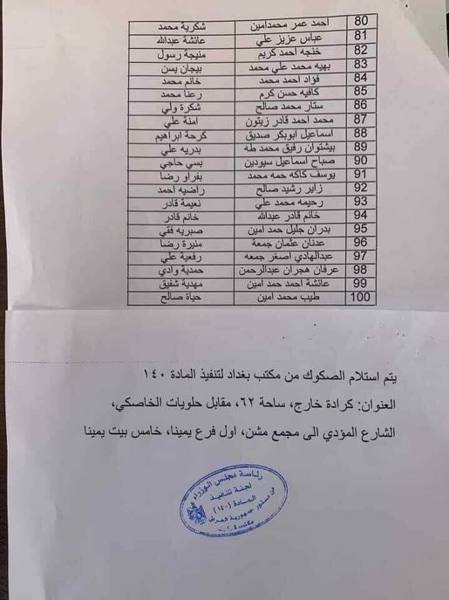ئۆفیسی کەرکوکی مادەی 140، ناوی 100 کەسی بڵاو کردەوە کە چەکی قەرەبوو